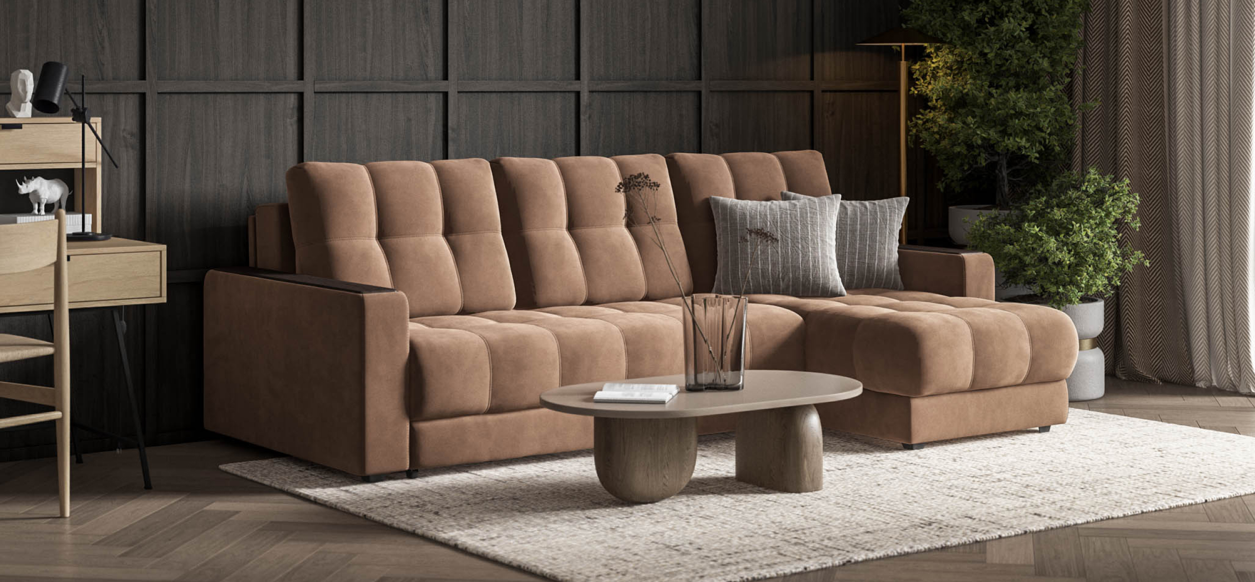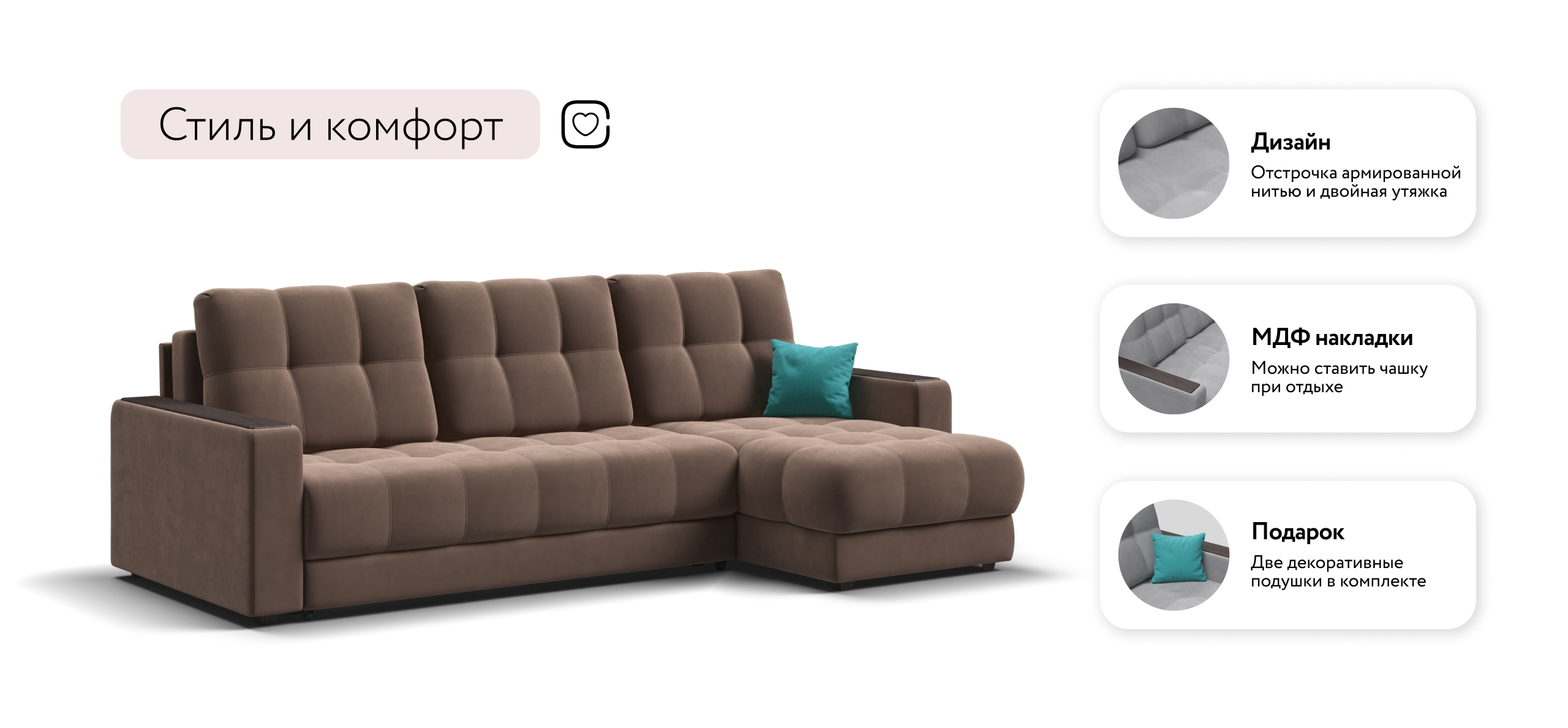 Угловой диван СОтА-75 Классик XL велюр Монолит мокко