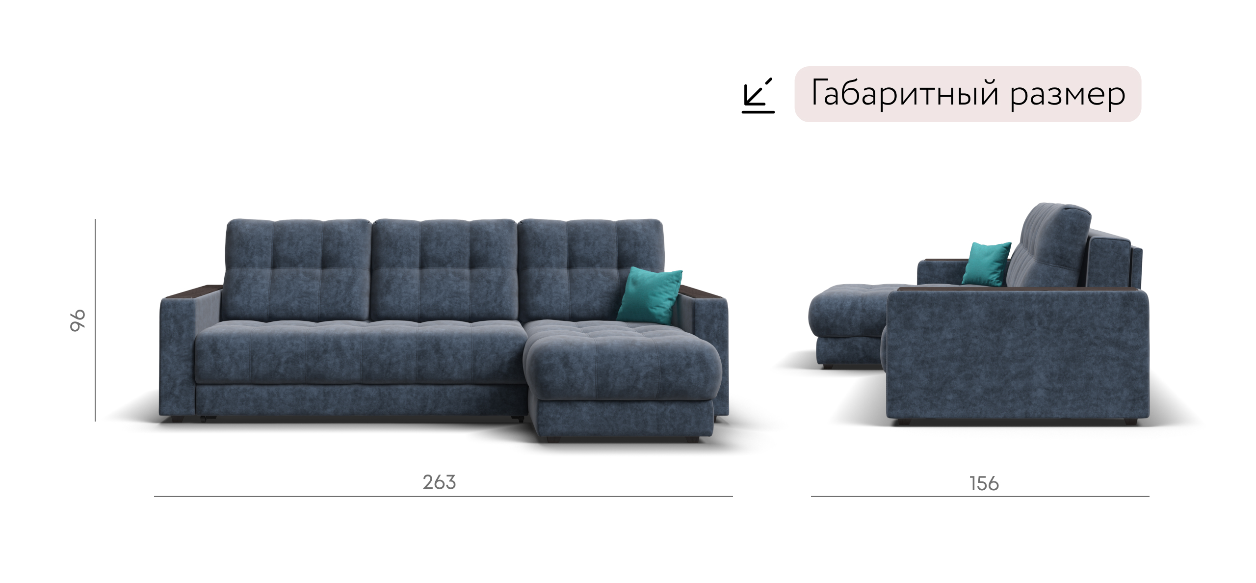 Угловой диван СОтА-75 XL велюр Роял топаз