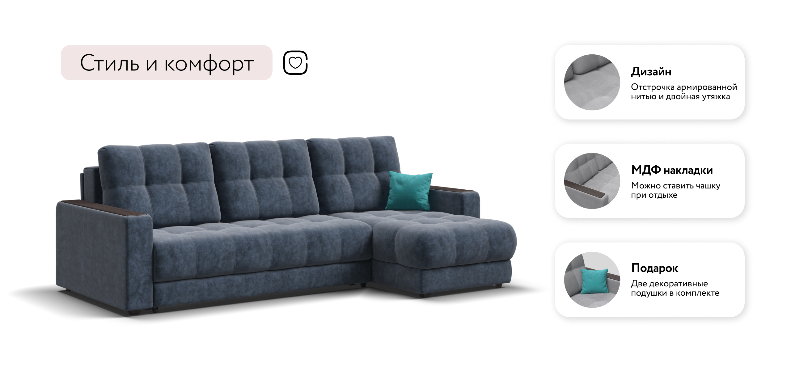 Продуманный до мелочей диван СОтА-75 сочетает в себе функциональный подлокотник, мягкие ткани, надежный каркас, качественное наполнение матраса и быструю сборку за 1 минуту без инструментов — ощутите комфорт у себя дома!