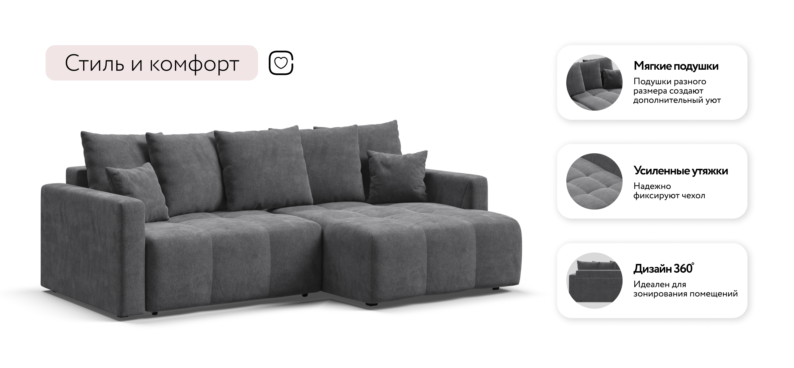 Суперудобная глубокая посадка, мягкие приспинные подушки и чехол Royal с ультропышной стежкой на холконе создают максимальный комфорт при отдыхе.