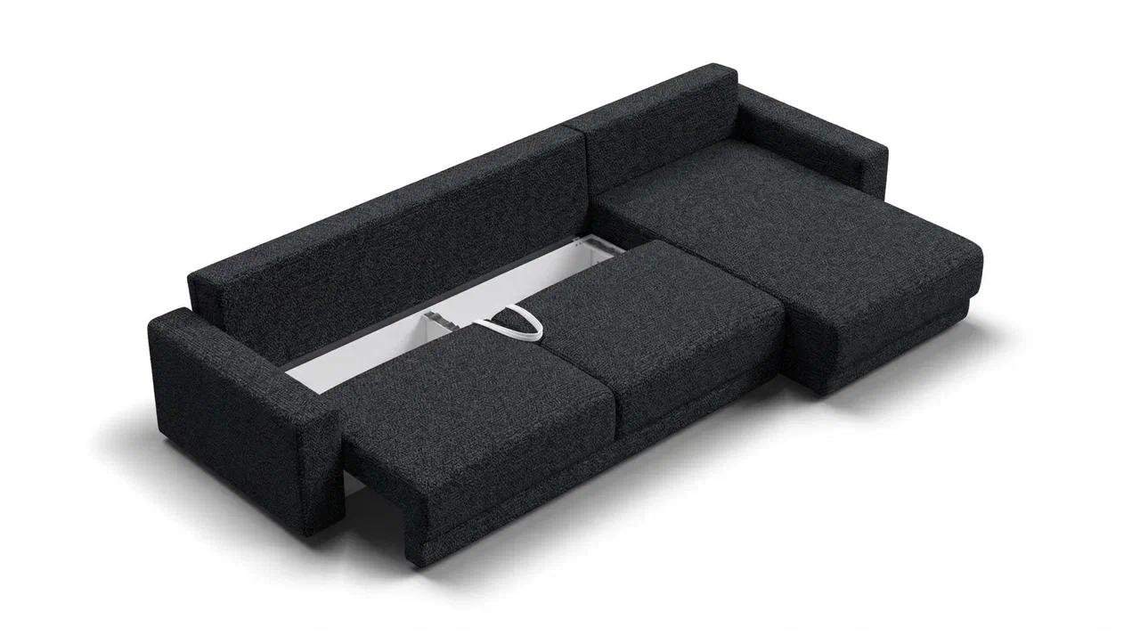 Оснащённый независимым пружинным блоком и высокоэластичной пеной Эластик Фоам с дополнительным слоем периотека, диван гарантирует анатомическую поддержку и комфортный сон. Простой и надёжный механизм трансформации «еврокнижка» позволяет легко преобразовать диван в просторное спальное место. Универсальный угол позволит Вам переставить оттоманку и поменять положение угла при необходимости.