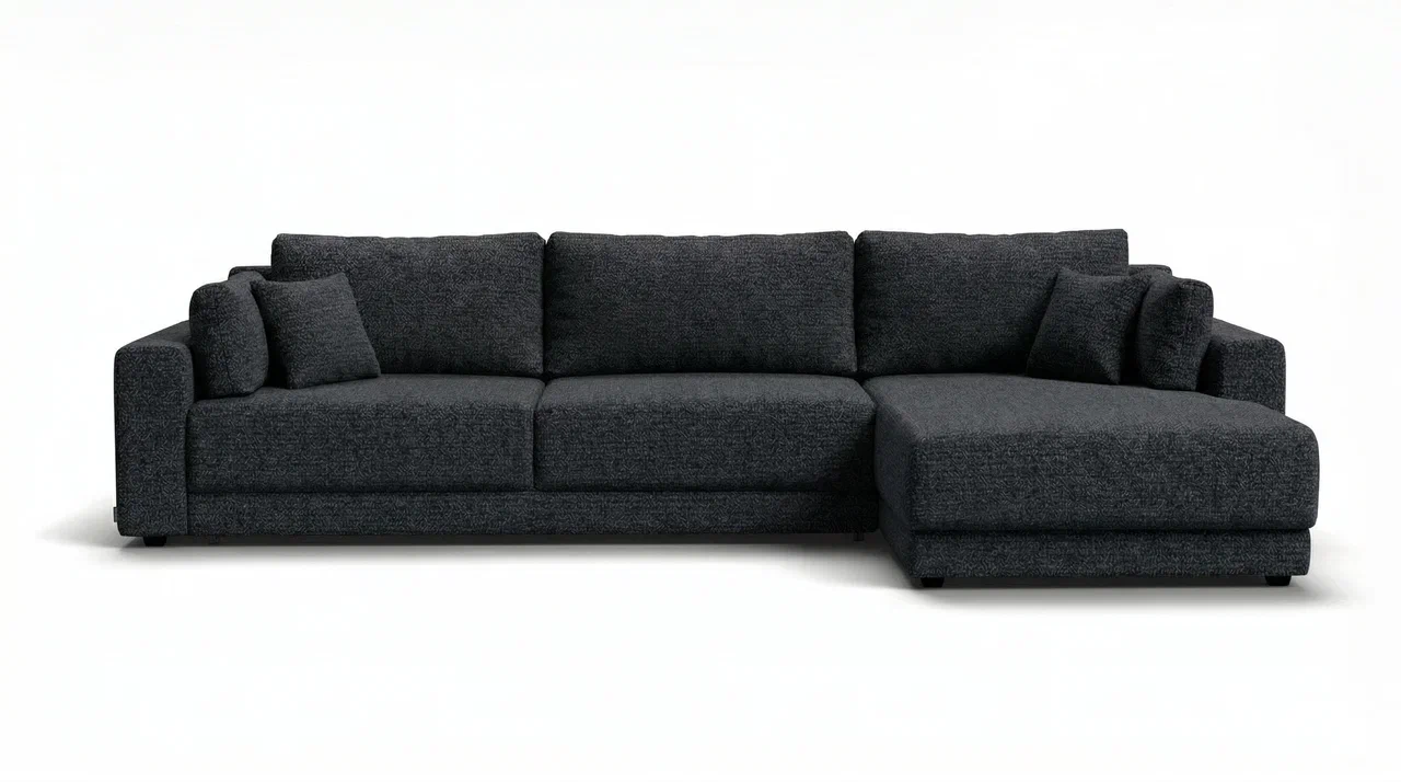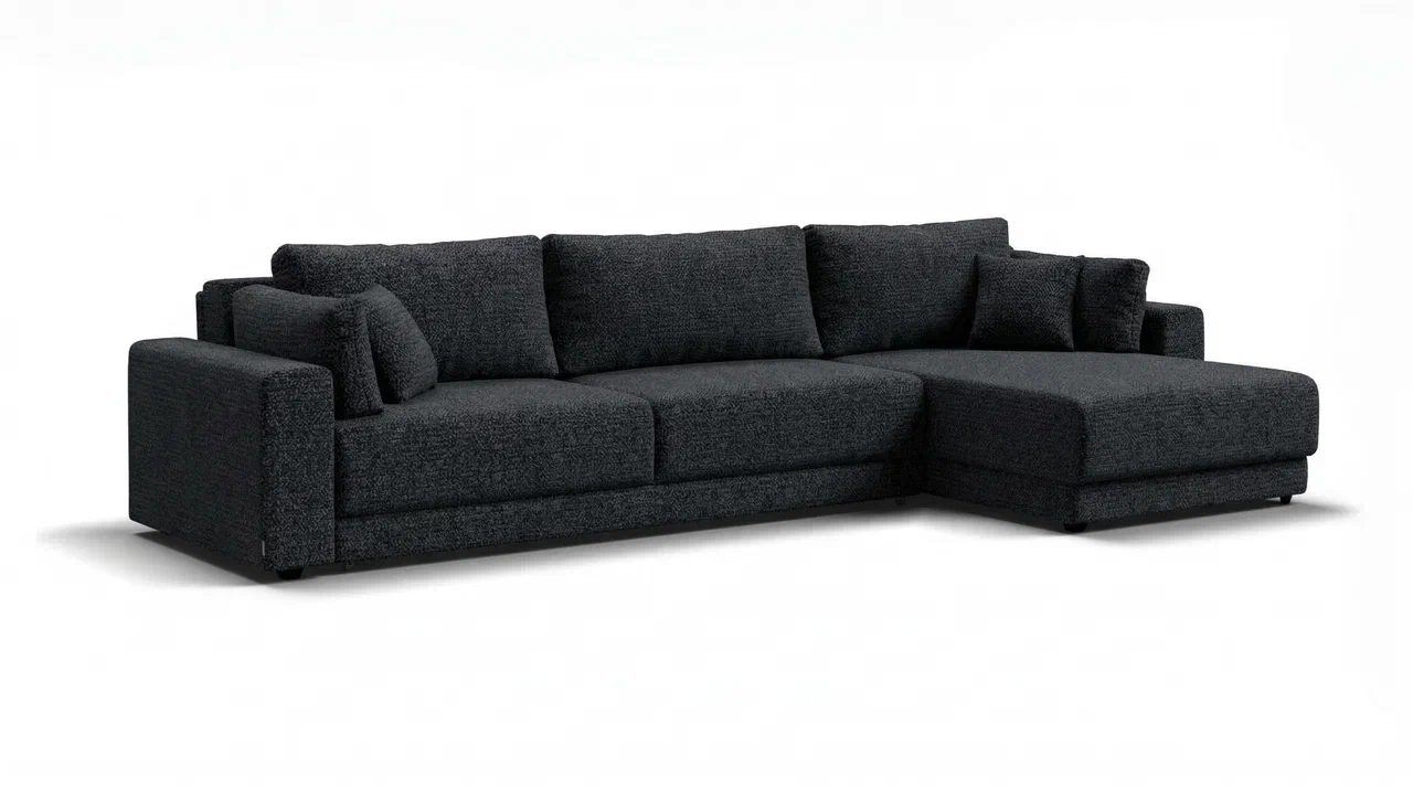 Угловой диван СОтА-77 Макс — это сочетание современного дизайна и продуманной эргономики, создающее уютную атмосферу в любом интерьере. Визуально разделённое сиденье, широкие мягкие подлокотники и пышные подушки разного размера обеспечивают не только эстетическую привлекательность, но и максимальный комфорт.