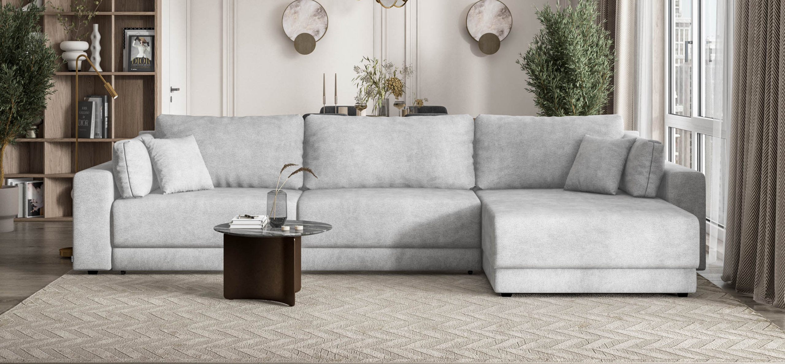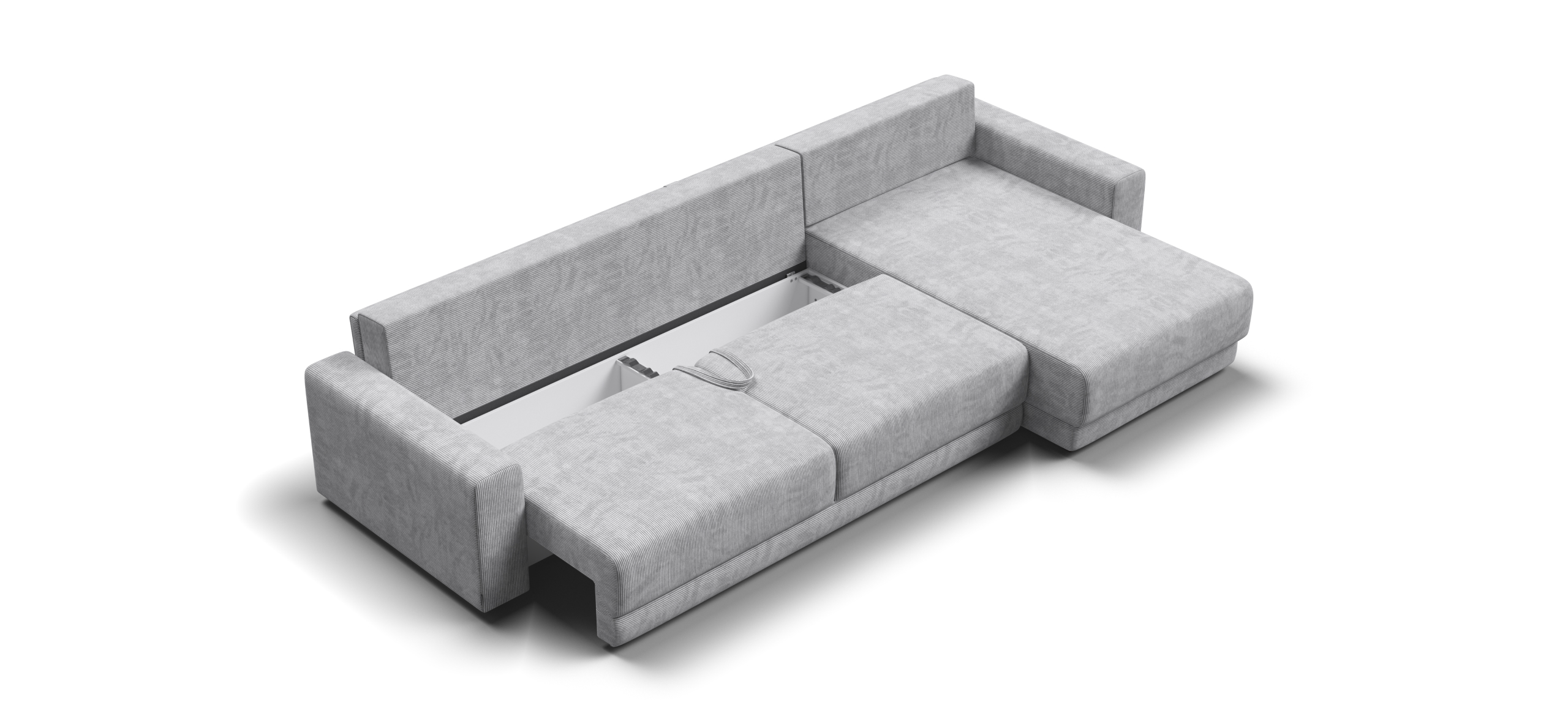 Оснащённый независимым пружинным блоком и высокоэластичной пеной Эластик Фоам с дополнительным слоем периотека, диван гарантирует анатомическую поддержку и комфортный сон. Простой и надёжный механизм трансформации «еврокнижка» позволяет легко преобразовать диван в просторное спальное место. Универсальный угол позволит Вам переставить оттоманку и поменять положение угла при необходимости.