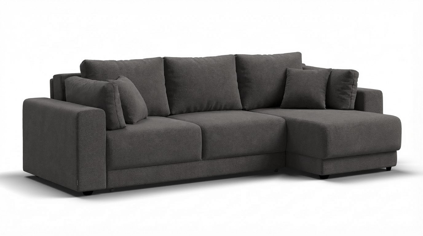 Угловой диван СОтА-77 — это сочетание современного дизайна и продуманной эргономики, создающее уютную атмосферу в любом интерьере. Визуально разделённое сиденье, широкие мягкие подлокотники и пышные подушки разного размера обеспечивают не только эстетическую привлекательность, но и максимальный комфорт.