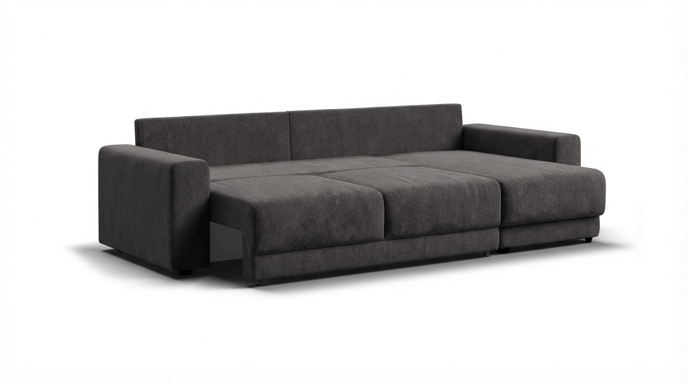 Оснащённый независимым пружинным блоком и высокоэластичной пеной Эластик Фоам с дополнительным слоем периотека, диван гарантирует анатомическую поддержку и комфортный сон. Простой и надёжный механизм трансформации «еврокнижка» позволяет легко преобразовать диван в просторное спальное место.