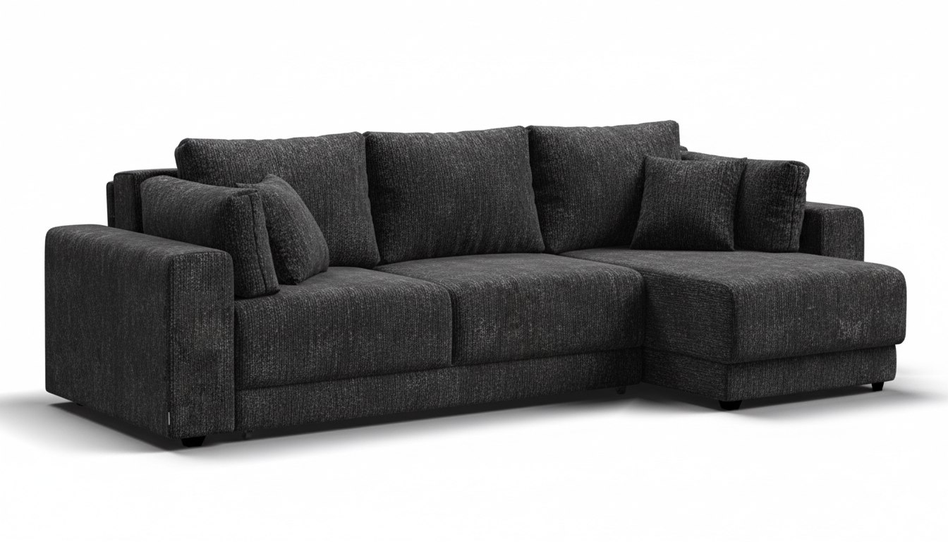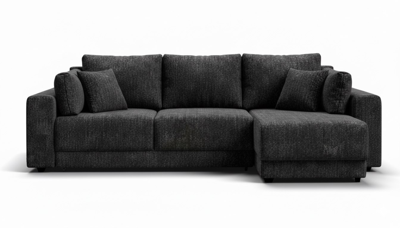 Угловой диван СОтА-77 — это сочетание современного дизайна и продуманной эргономики, создающее уютную атмосферу в любом интерьере. Визуально разделённое сиденье, широкие мягкие подлокотники и пышные подушки разного размера обеспечивают не только эстетическую привлекательность, но и максимальный комфорт.​
