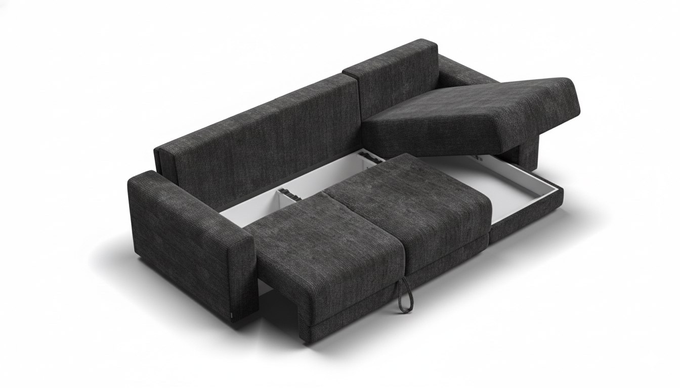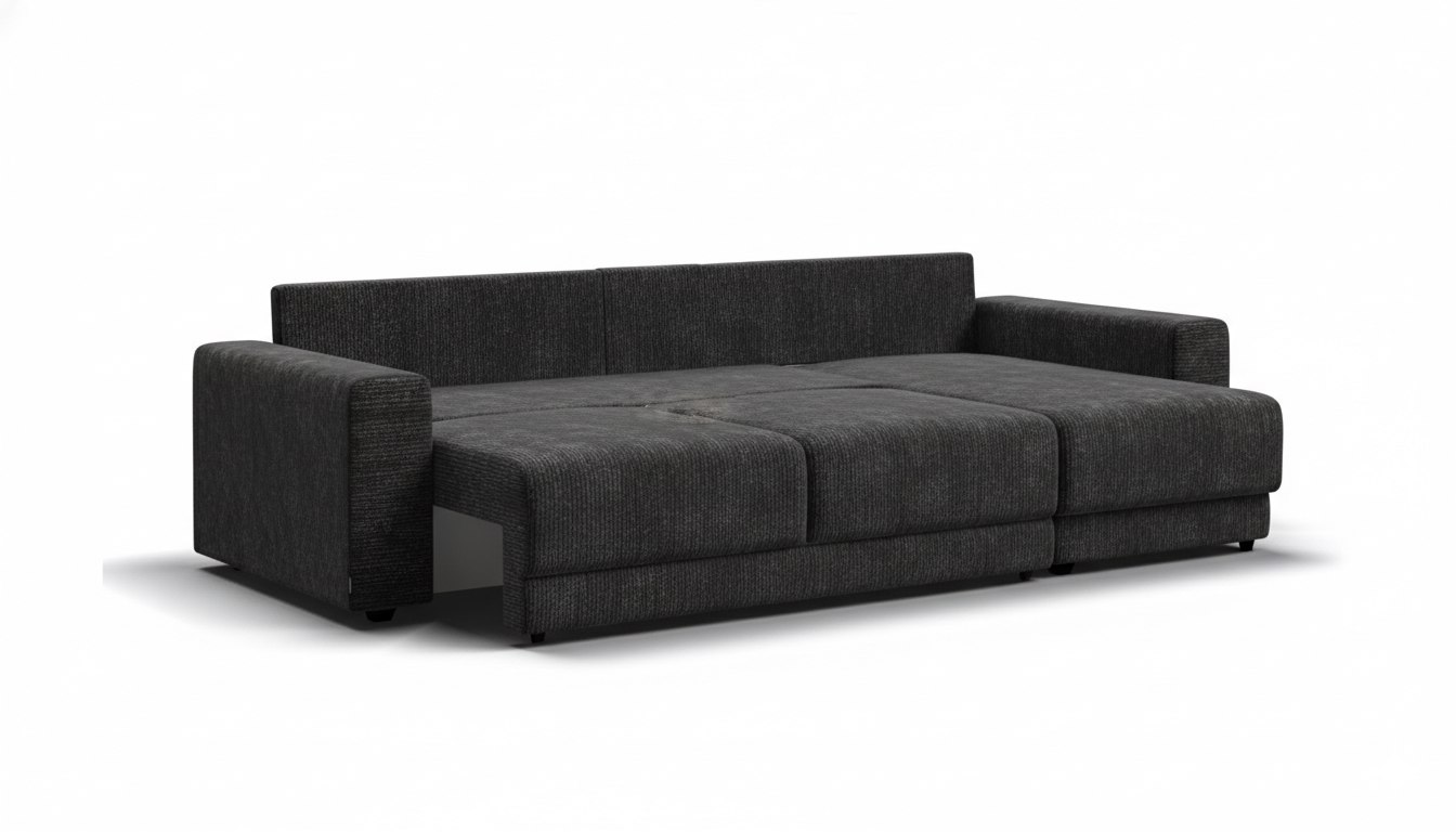 Оснащённый независимым пружинным блоком и высокоэластичной пеной Эластик Фоам с дополнительным слоем периотека, диван гарантирует анатомическую поддержку и комфортный сон. Простой и надёжный механизм трансформации «еврокнижка» позволяет легко преобразовать диван в просторное спальное место.