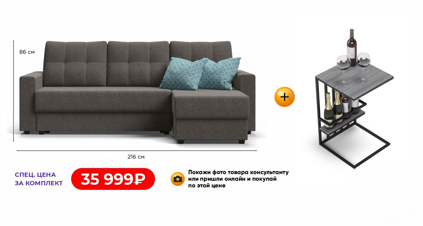 Угловой диван СОтА-40 + Стол-приставка BOSS.XO -42% Первоначальная цена составляла 137 904 ₽.Текущая цена: 79 999 ₽.