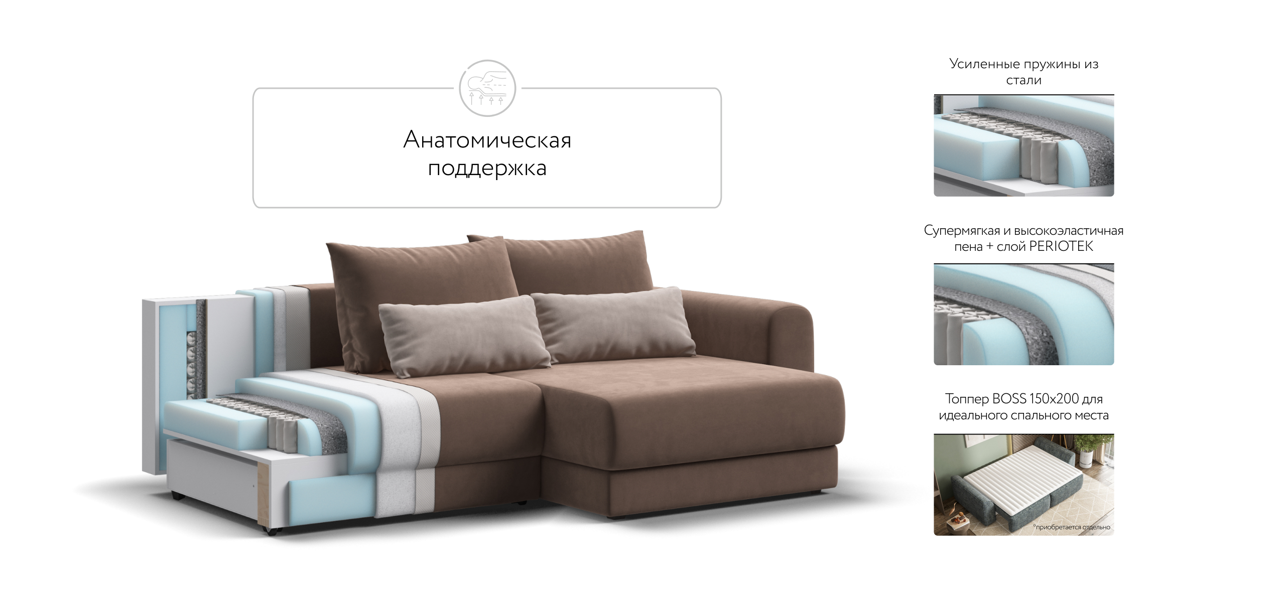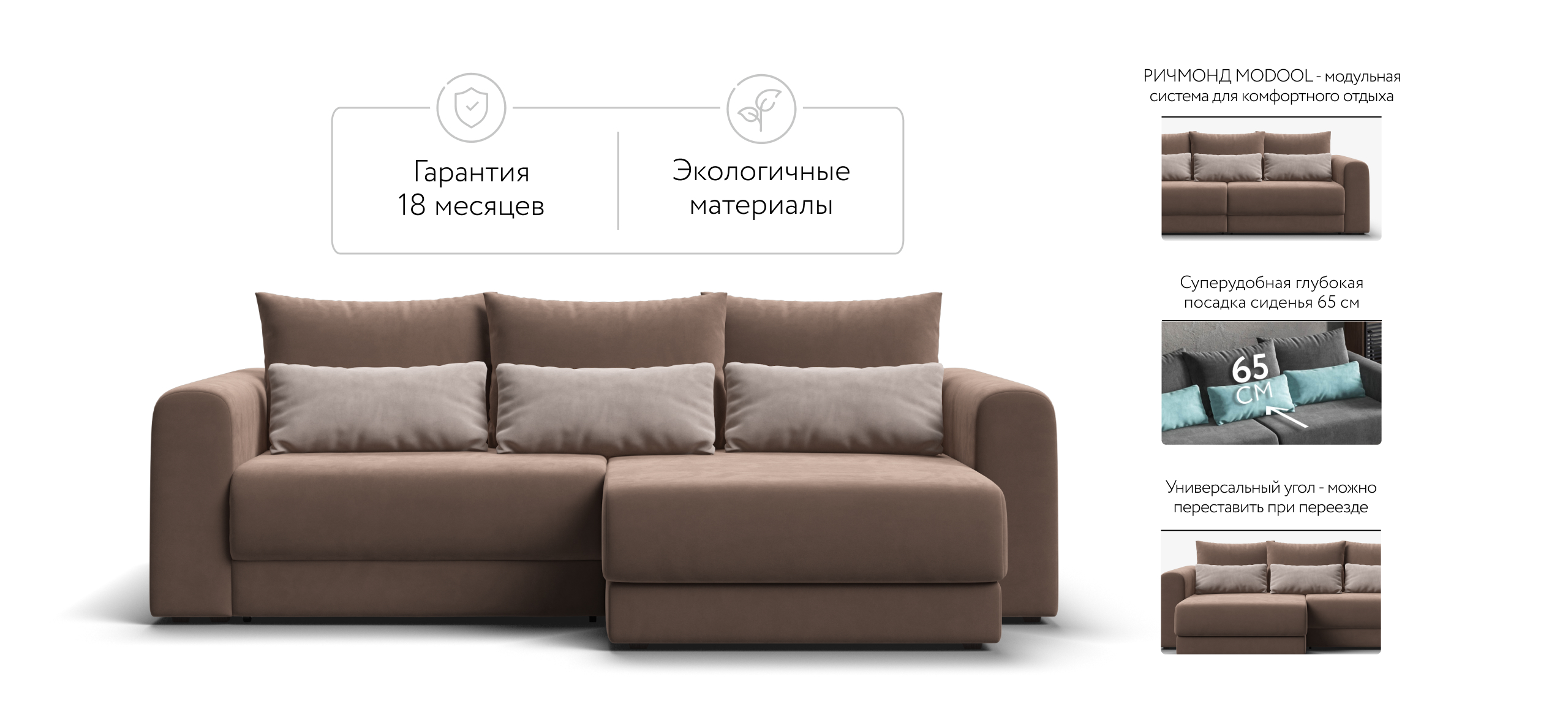 Угол СОтА-33 Мини велюр Монолит Мокко, Монолит латте (Предзаказ)