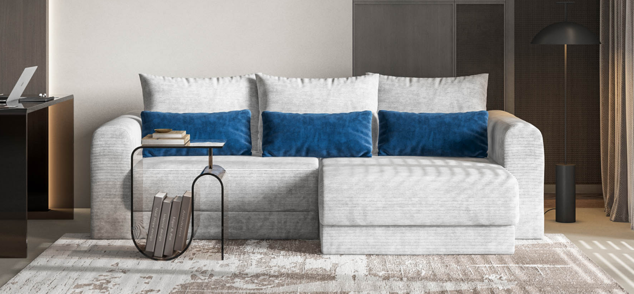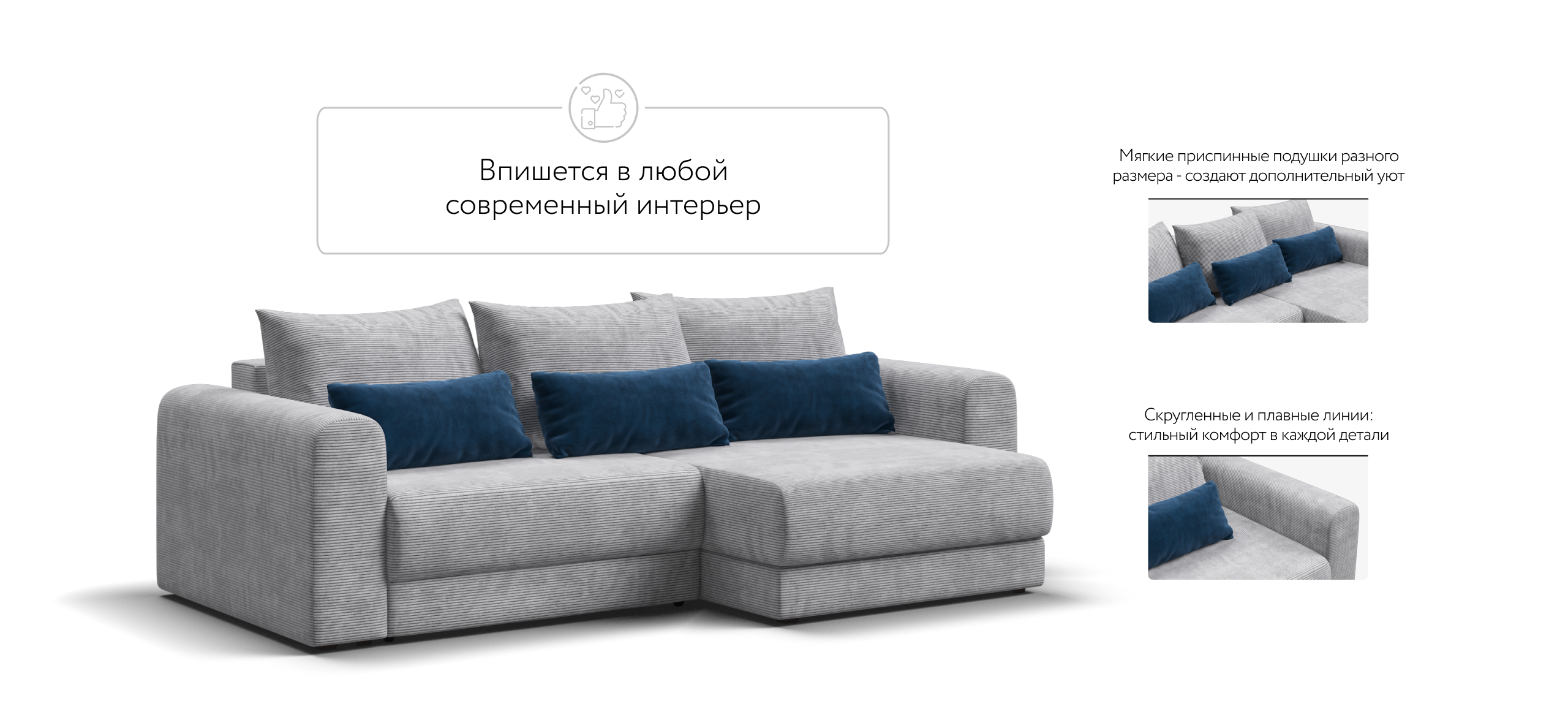 Диван СОтА-33 современный, комфортабельный лаунж диван с оригинальным дизайном. Его плавные формы, комфортная посадка, большое количество декоративных подушек и мягкая ткань добавляют в интерьер уюта. Каждое посадочное место выдвигается вперед и получается универсальный Угловой диван. Благодаря механизму еврокнижка диван с легкостью превращается в полноценное спальное место.