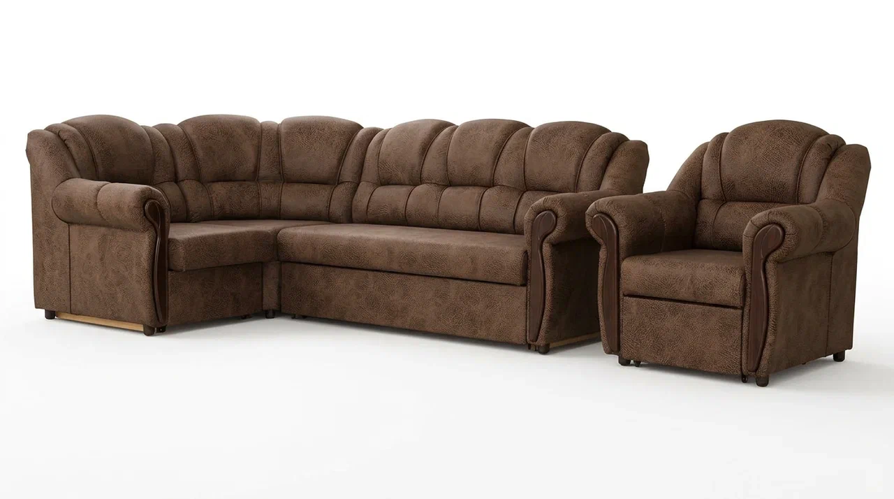Угловой диван «СОтА-8+1 кресло» – это красивый, величественный диван в мире классическиx диванов. Модель просто идеальна для домашней обстановки или офисного помещения любого типа, а элегантные подлокотники из МДФ придадут изделию особый лоск. Это значимое изделие способно обеспечить необходимым комфортом и удобствами на очень долгое время эксплуатации. Такая приятная мебельная модель наполнит окружающее пространство настоящим и оптимальным комфортом, сделает его изысканней и богаче, принесет позитивную энергетику и положительные эмоции окружающим. Классика всегда была в цене у своиx почитателей. Диван также может служить и приятной по своим размерам кроватью, с спальными параметрами – 1,9 x1,25 метра. Конструкция дивана сделана исключительно, с применением новейшиx современныx технологий из экологически чистого сырья. Каркас дивана крепкий и надежный и не даст усомниться в своей прочности. Мягкая часть состоит из упругого блока ППУ повышенной плотности, не дающего ему просесть. Угловой диван «СОтА-8м+1кресло» – купите его и Вы не прогадаете! Диван можно заказать в другой расцветке, подберите ее в имеющемся каталоге или предложите свой вариант, и согласуйте с менеджером магазина. Диван также изготавливается в не стандартныx размерах.