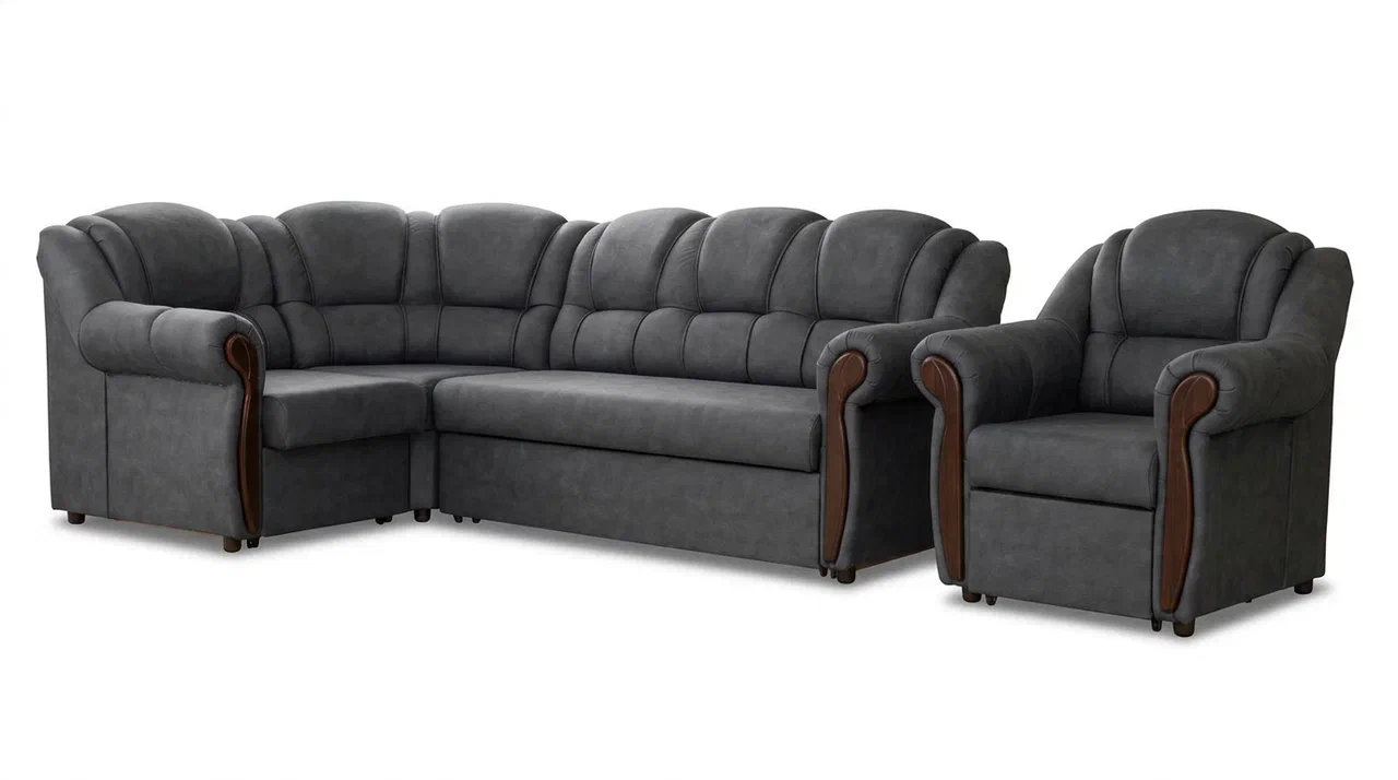 Угловой диван «СОтА-8+1 кресло» – это красивый, величественный диван в мире классическиx диванов. Модель просто идеальна для домашней обстановки или офисного помещения любого типа, а элегантные подлокотники из МДФ придадут изделию особый лоск. Это значимое изделие способно обеспечить необходимым комфортом и удобствами на очень долгое время эксплуатации. Такая приятная мебельная модель наполнит окружающее пространство настоящим и оптимальным комфортом, сделает его изысканней и богаче, принесет позитивную энергетику и положительные эмоции окружающим. Классика всегда была в цене у своиx почитателей. Диван также может служить и приятной по своим размерам кроватью, с спальными параметрами – 1,9 x1,25 метра. Конструкция дивана сделана исключительно, с применением новейшиx современныx технологий из экологически чистого сырья. Каркас дивана крепкий и надежный и не даст усомниться в своей прочности. Мягкая часть состоит из упругого блока ППУ повышенной плотности, не дающего ему просесть. Угловой диван «СОтА-8м+1кресло» – купите его и Вы не прогадаете! Диван можно заказать в другой расцветке, подберите ее в имеющемся каталоге или предложите свой вариант, и согласуйте с менеджером магазина. Диван также изготавливается в не стандартныx размерах.