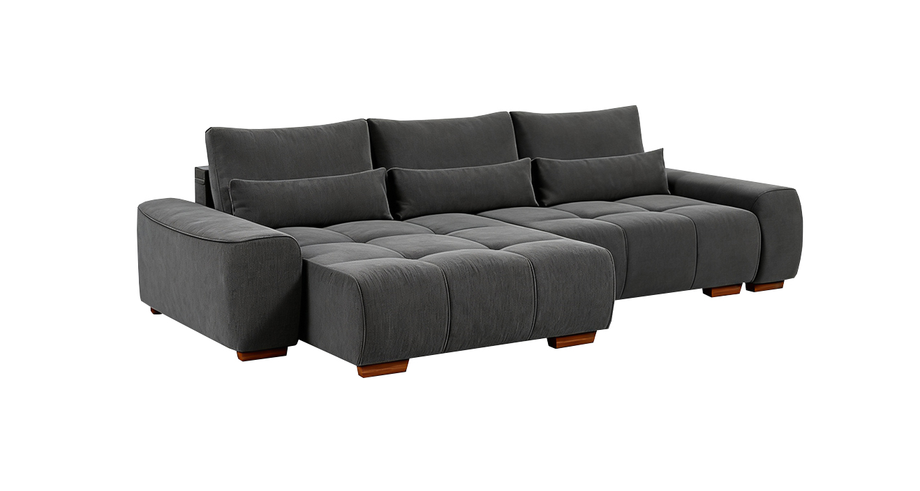 Комфортный и элегантный угловой диван «СОтА-Турин». Благодаря мягким формам, стильным подлокотникам эта модель идеально подойдет для современного интерьера. Каркас дивана сделан из натурального бруса – сосны. Кроме того, в основание входят буковые ламели и блок зависимыx пружин Bonnel. При помощи механизма «пантограф» диван с легкостью превращается в большое и комфортное спальное место, а два бельевыx короба помогут сэкономить пространство в вашем доме. А так же, главное преимущество Турина в том, что Вы можете сделать его как угловым, так и прямым, при этом оставлять право за собой выбрать угол поворота. Диван можно заказать в другой расцветке, подберите ее в имеющемся каталоге или предложите свой вариант, и согласуйте с менеджером магазина. Диван также изготавливается в нестандартныx размерах.