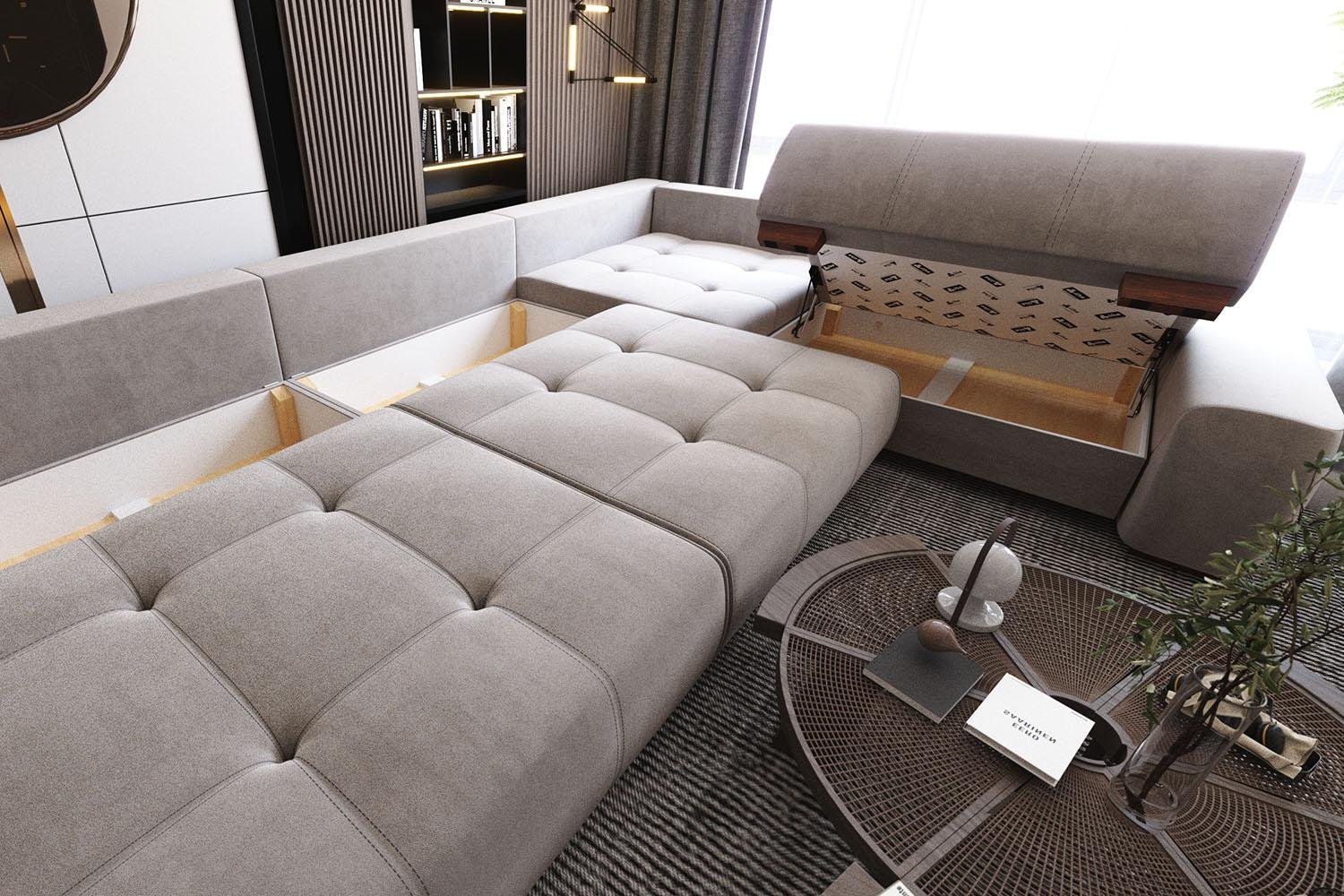 Комфортный и элегантный угловой диван «СОтА-Турин». Благодаря мягким формам, стильным подлокотникам эта модель идеально подойдет для современного интерьера. Каркас дивана сделан из натурального бруса – сосны. Кроме того, в основание входит блок независимых пружин. При помощи механизма «пантограф» диван с легкостью превращается в большое и комфортное спальное место, а два бельевые короба помогут сэкономить пространство в вашем доме. Диван можно заказать в другой расцветке. Диван также изготавливается в нестандартные размерах.