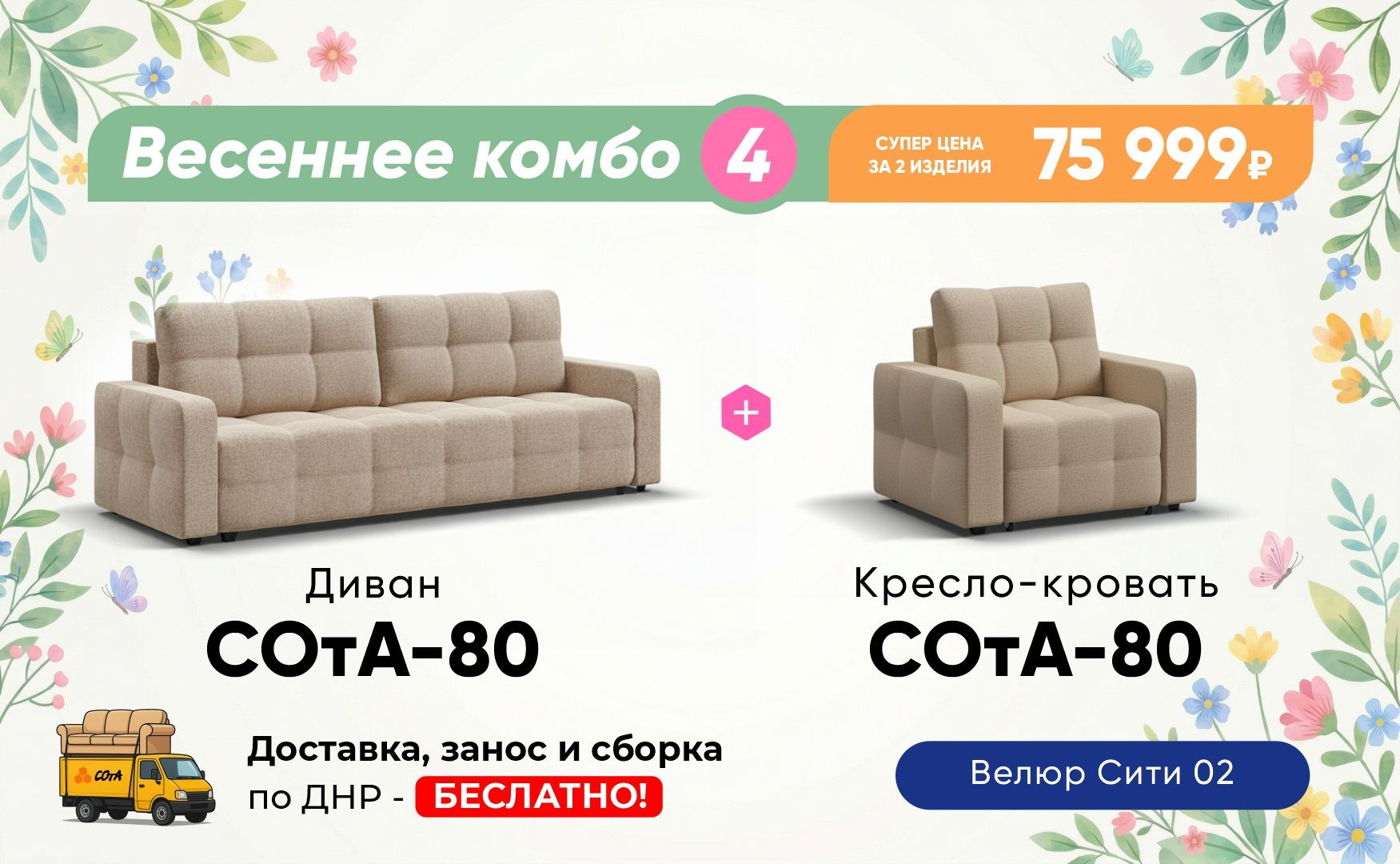 СОтА-80 – кресло-кровать с механизмом EASY-ROLL, которое отлично дополняет линейку диванов СОтА-80. Легким движением руки кресло раскладывается в удобную кровать. Приспинная планка защищает стены, а также позволяет защитить подушку от падения во время сна. Комфортный матрас 16 см толщиной обеспечивает здоровый сон.